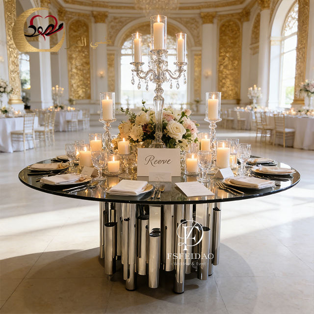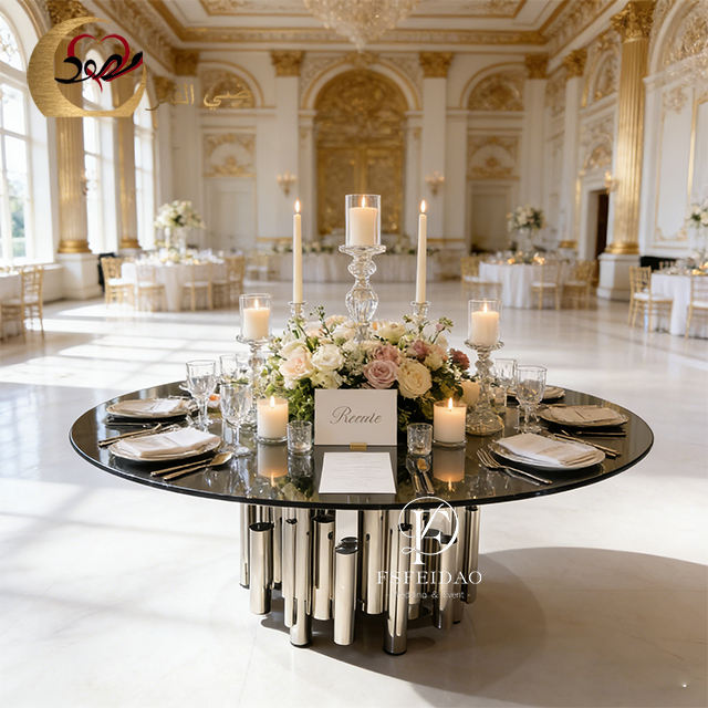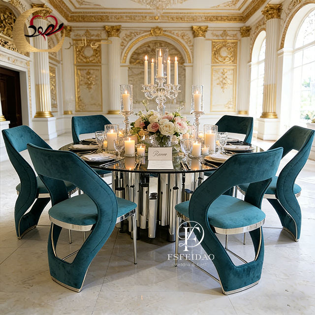 ชุดโต๊ะอาหารทรงกลมสแตนเลสหรูหราทันสมัยสำหรับ 8 ที่นั่ง เฟอร์นิเจอร์บ้านปรับแต่งได้ เหมาะสำหรับใช้ในโรงแรม