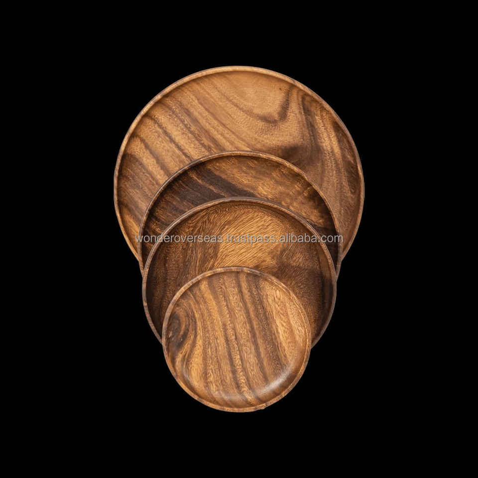 ถาดไม้ทรงกลมหรูหรา จานขัดเงาสำหรับเสิร์ฟในงานปาร์ตี้ ผลิตแบบยั่งยืนและเป็นมิตรกับสิ่งแวดล้อม ทำด้วยมือ สไตล์อเมริกัน