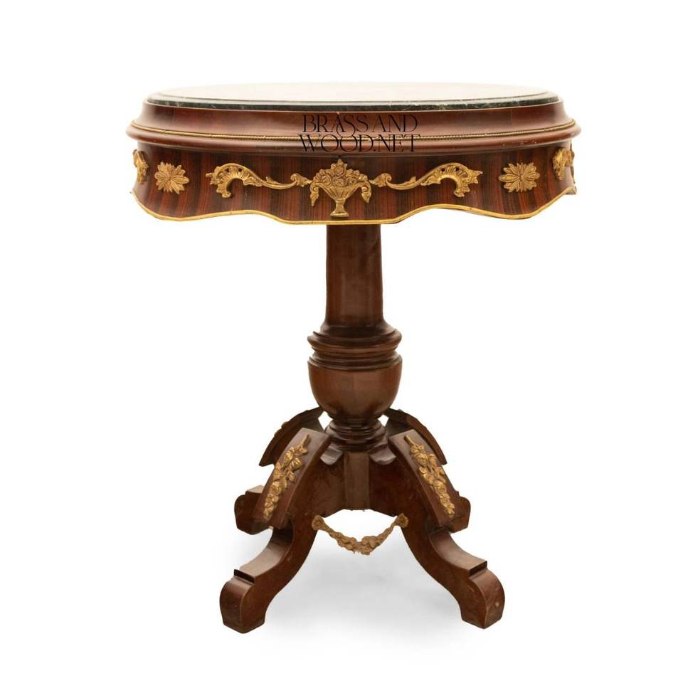 Luxury Round Side Table with Premium Dark Marble Top Ornate Gold Brass Accents and Central Pedestal Base for Palace Decor