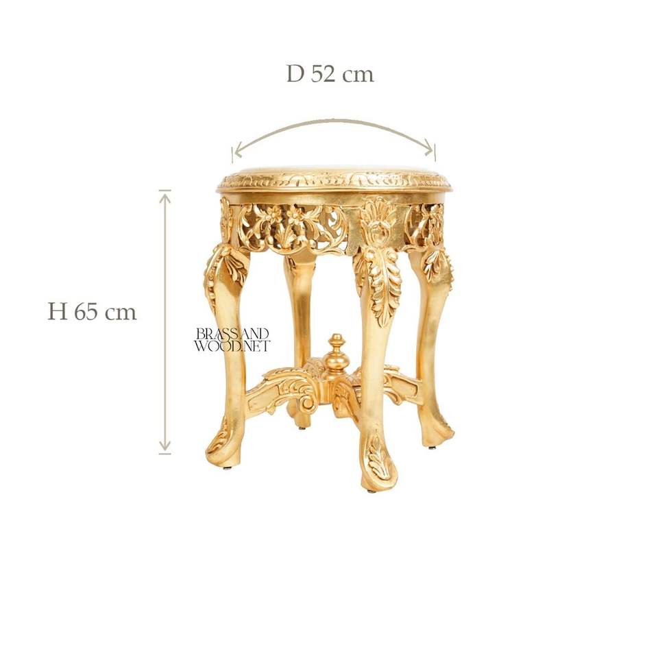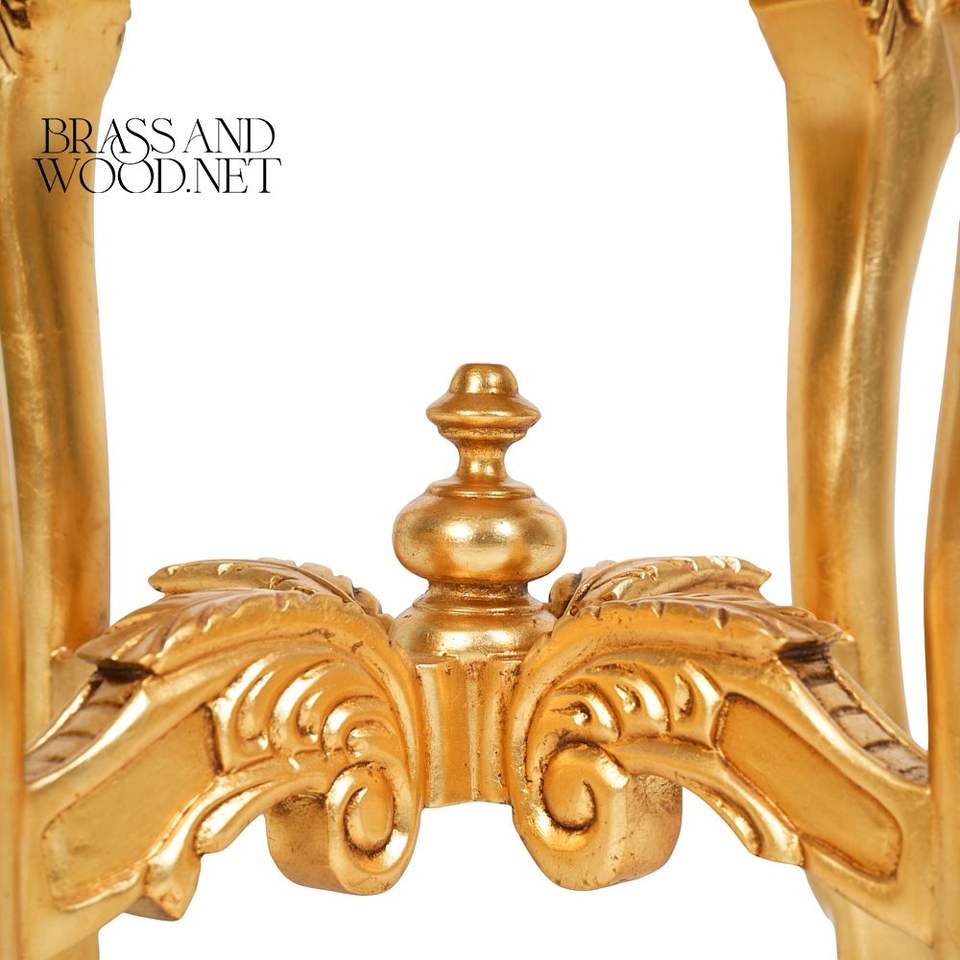 โต๊ะข้างทรงกลมหรูหราพร้อมท็อปหินอ่อนสีขาวและโครงไม้แกะสลักลายทองคำเปลวอย่างประณีตสำหรับตกแต่งบ้านสไตล์พระราชวัง