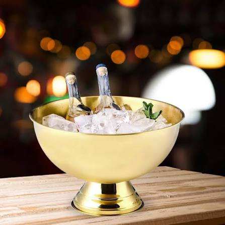ชามน้ำแข็งสแตนเลสทรงกลมหรูหรา สีทอง สำหรับบ้าน โรงแรม ร้านอาหาร ชามน้ำแข็งโลหะขัดเงาสำหรับตกแต่ง