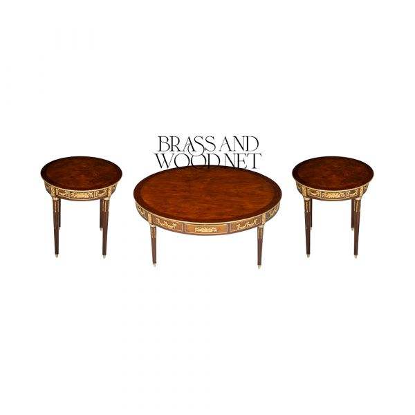 ชุดโต๊ะกาแฟและโต๊ะข้างทรงกลมไม้สุดหรู