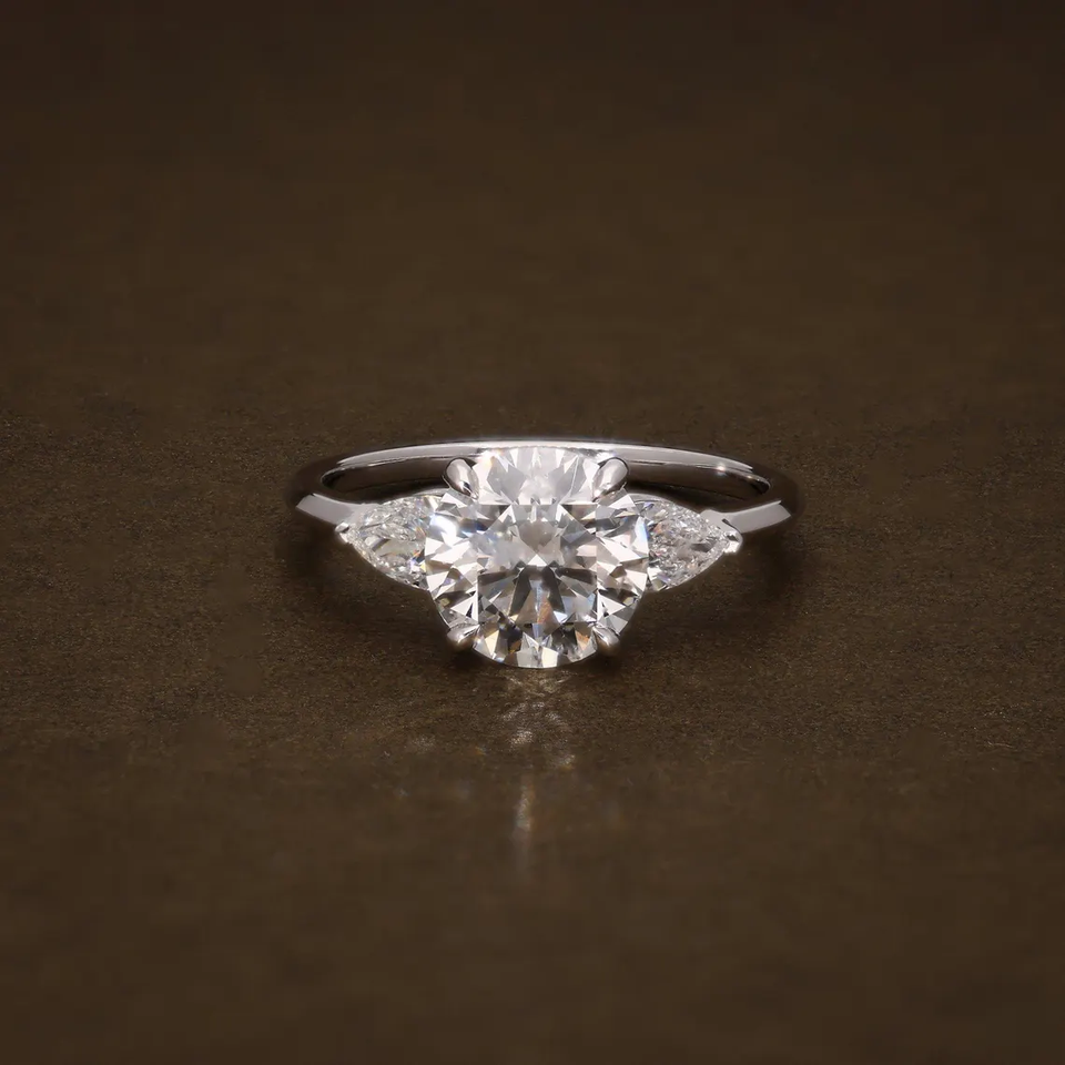 แหวนหมั้นเพชรทรงกลมและทรงหยดน้ำสังเคราะห์แบบสามเม็ด ทองคำแท้ สำหรับขอแต่งงาน เครื่องประดับชั้นดี