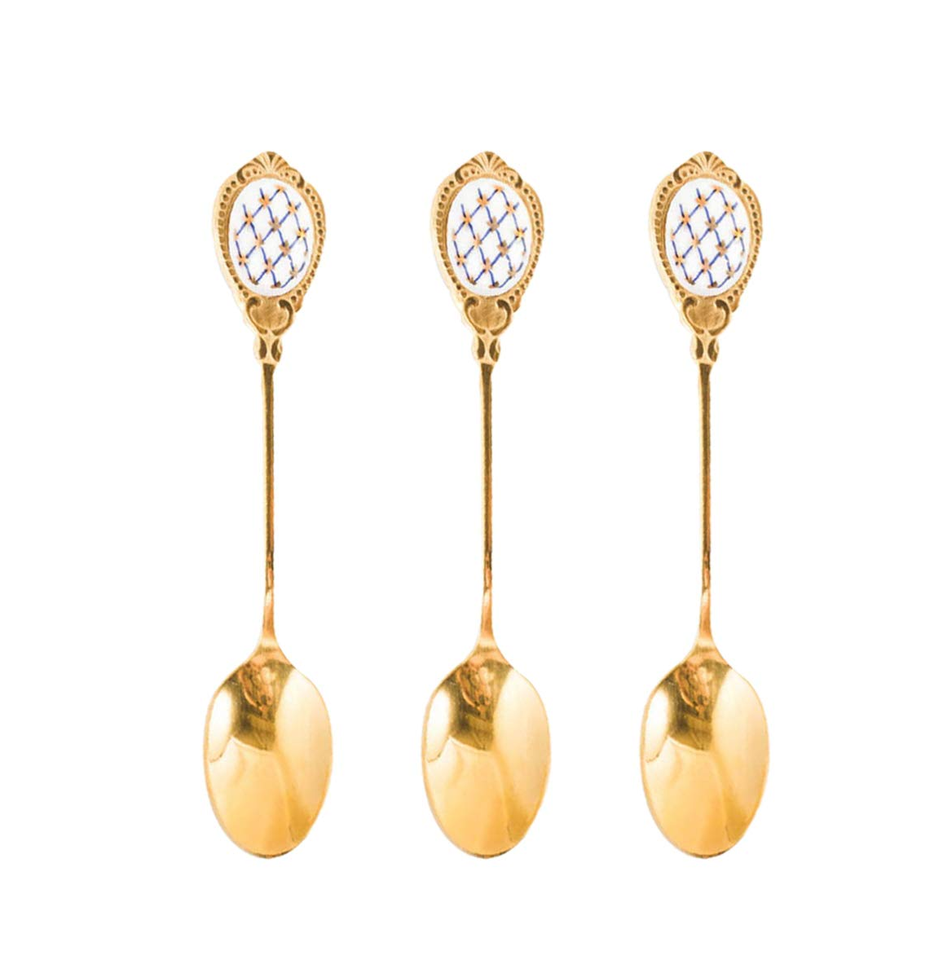 ช้อนทองเหลืองรอยัลหรูหราเครื่องใช้บนโต๊ะอาหารสีทองทองเหลืองด้ามแข็งช้อนสำหรับทารกช้อนทดสอบเงางาม