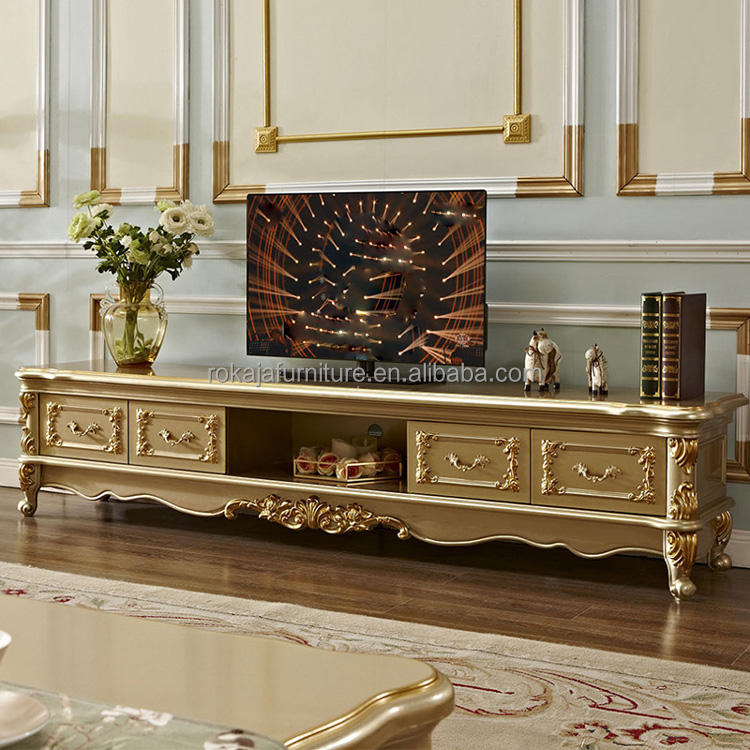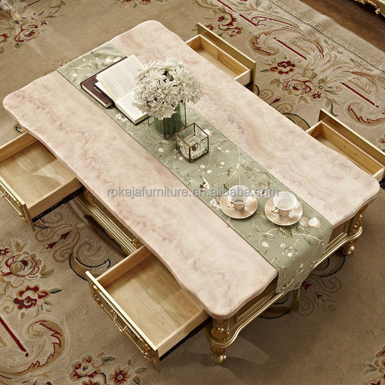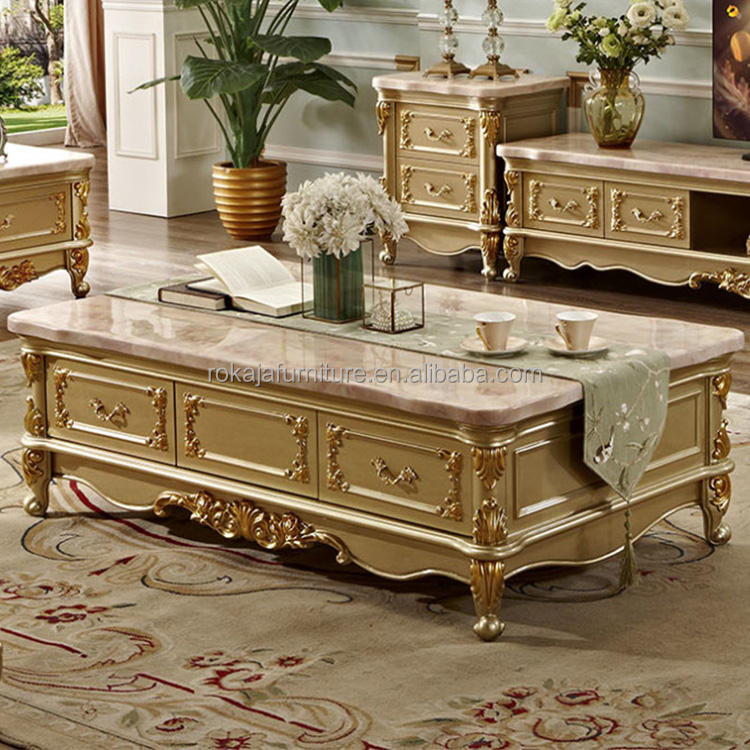 โต๊ะกาแฟสไตล์ยุโรปหรูหราหรูหราหรูหรามีขาตั้งทีวีสีทองหินอ่อน