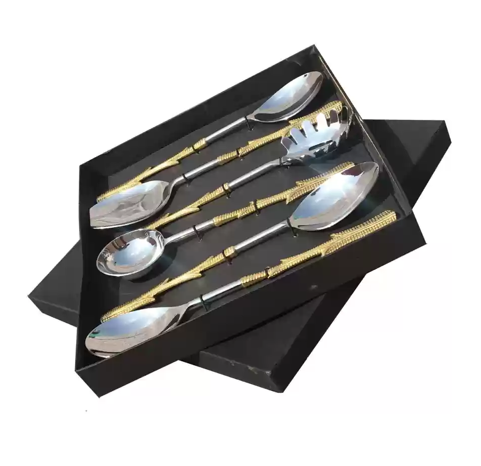 ชุดช้อนส้อมสแตนเลสแบบรอยัลสุดหรูชุดเครื่องใช้บนโต๊ะอาหารมันวาวด้ามทองเหลืองกล่องบรรจุของขวัญ