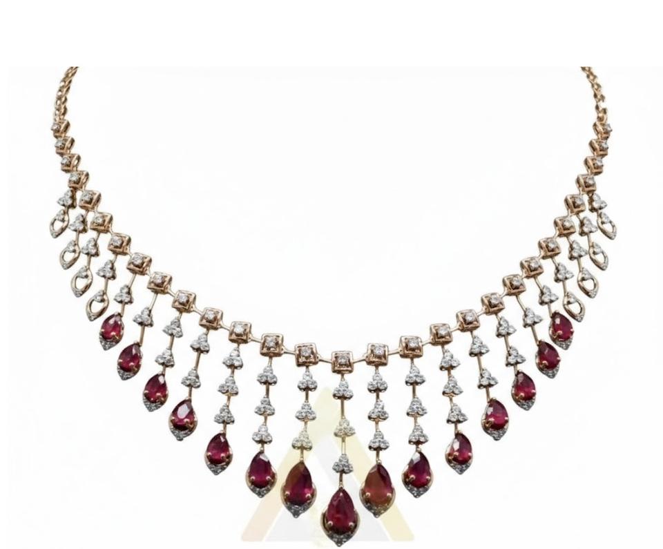 ชุดสร้อยคอหรูหราประดับทับทิมและเพชรทรงลูกแพร์ ดีไซน์เหนือกาลเวลา พร้อมการตกแต่งที่งดงาม เหมาะสำหรับผู้หญิงและชุดราตรี