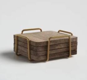 จานรองแก้วไม้ทรงสี่เหลี่ยมแบบเรียบง่ายสุดหรูสำหรับ Amazon โต๊ะรับประทานอาหารกันหกเสิร์ฟเครื่องเทศสมุนไพรและเครื่องเทศ