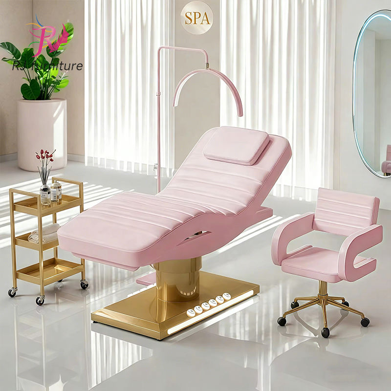 เตียงต่อขนตาไฟฟ้าแบบโค้งพร้อมไฟ LED 3 มอเตอร์ เตียงนวดหน้าสปาไฟฟ้าสำหรับร้านเสริมสวยหรู