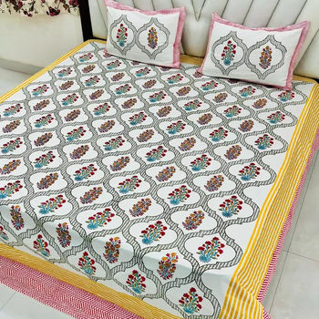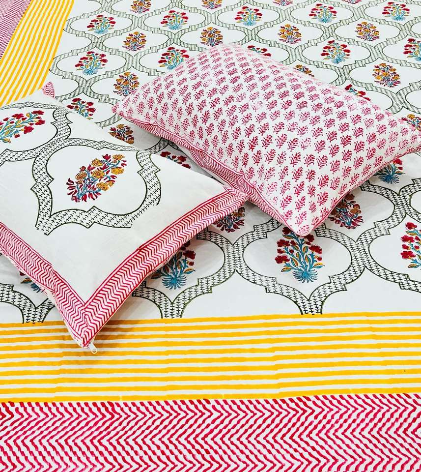 ชุดเครื่องนอนผ้าซาตินพิมพ์ลายดอกไม้สีเหลืองและปลอกหมอนแบบซิป2แบบดั้งเดิม
