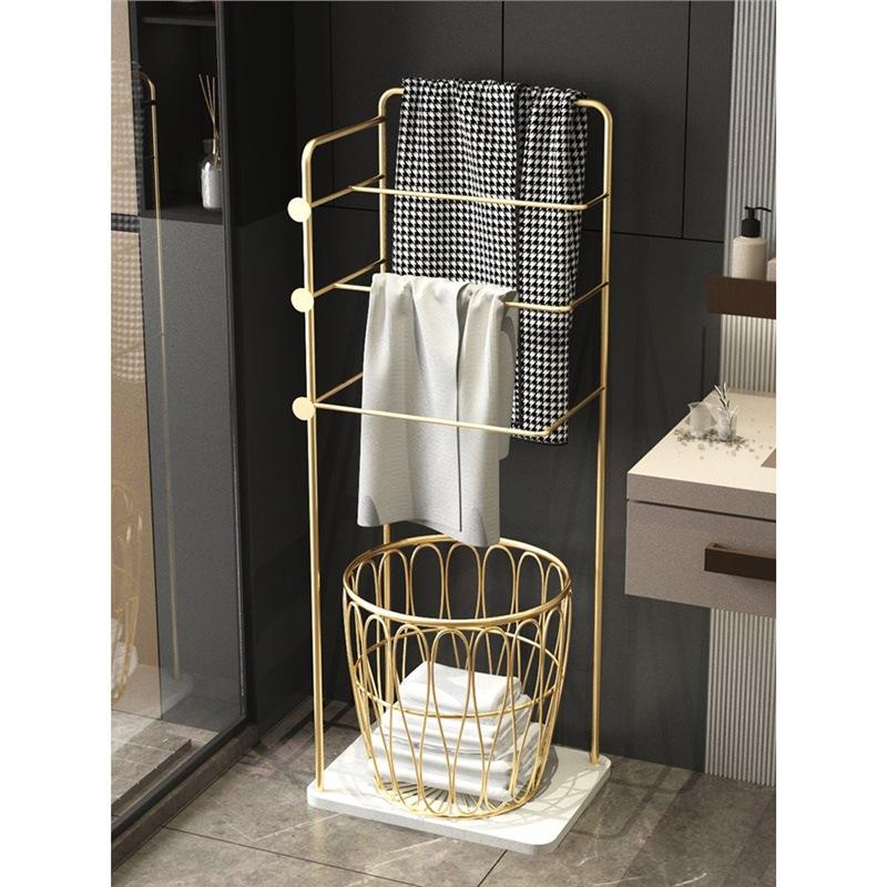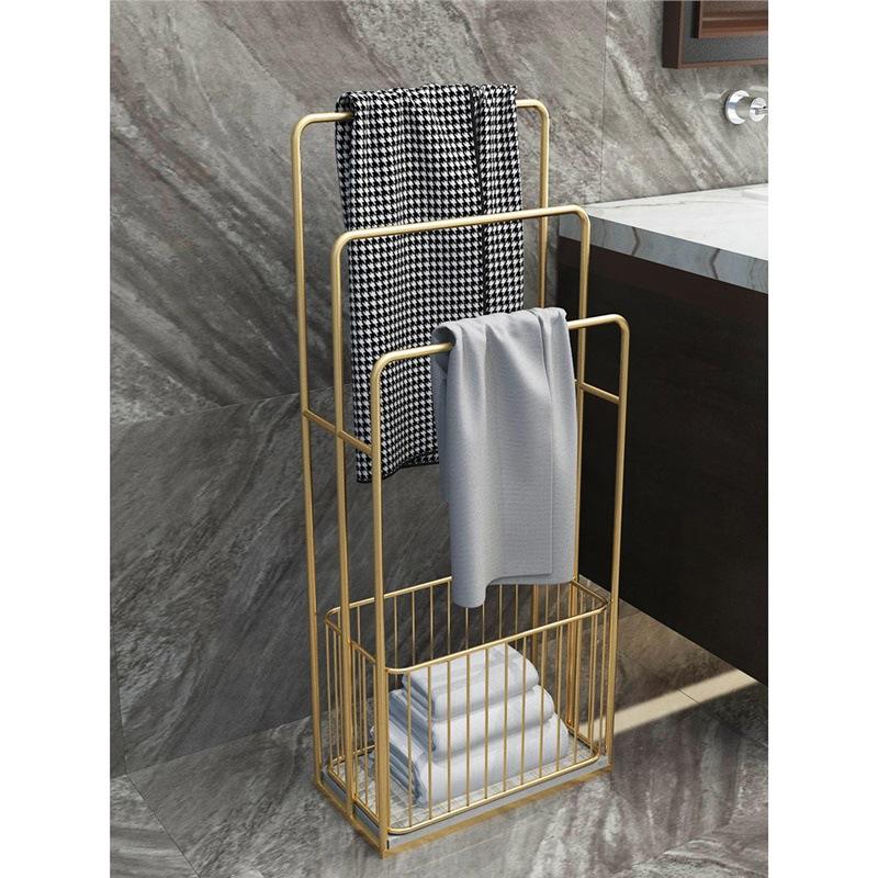 สไตล์ Y - ราวแขวนผ้าสีทองพร้อมตะกร้าสี่เหลี่ยมสีทอง