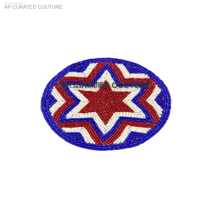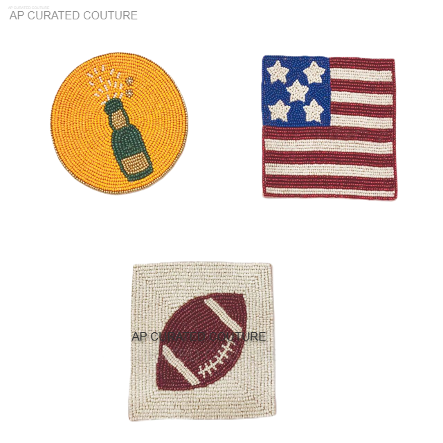ถาดรองแก้วทรงกลมสีทองประดับลูกปัดสำหรับโต๊ะอาหารทำมือสุดหรู