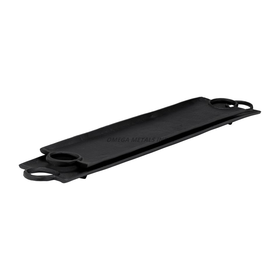 ถาดเสิร์ฟสุดหรูสีเงินมันวาวรูปทรงสี่เหลี่ยมผืนผ้าและด้ามจับที่หรูหราเหมาะสำหรับเสิร์ฟเครื่องดื่มและของว่าง