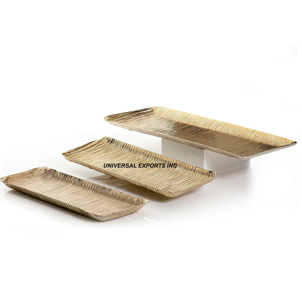 ชุดถาดช็อคโกแลตสามชิ้นทำด้วยมือสีทองถาดช็อคโกแลตแฟนซีทรงสี่เหลี่ยมผืนผ้าหรูหรา