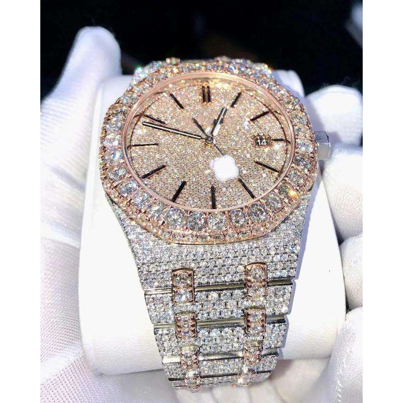 นาฬิกาเพชรโมอิสซาไนต์ VVS ระดับหรูหรา ดีไซน์เปล่งประกาย ระบบอัตโนมัติเต็มรูปแบบ กันน้ำ สำหรับผู้ชาย สายนาฬิกาคุณภาพสูง สไตล์ฮิปฮอป