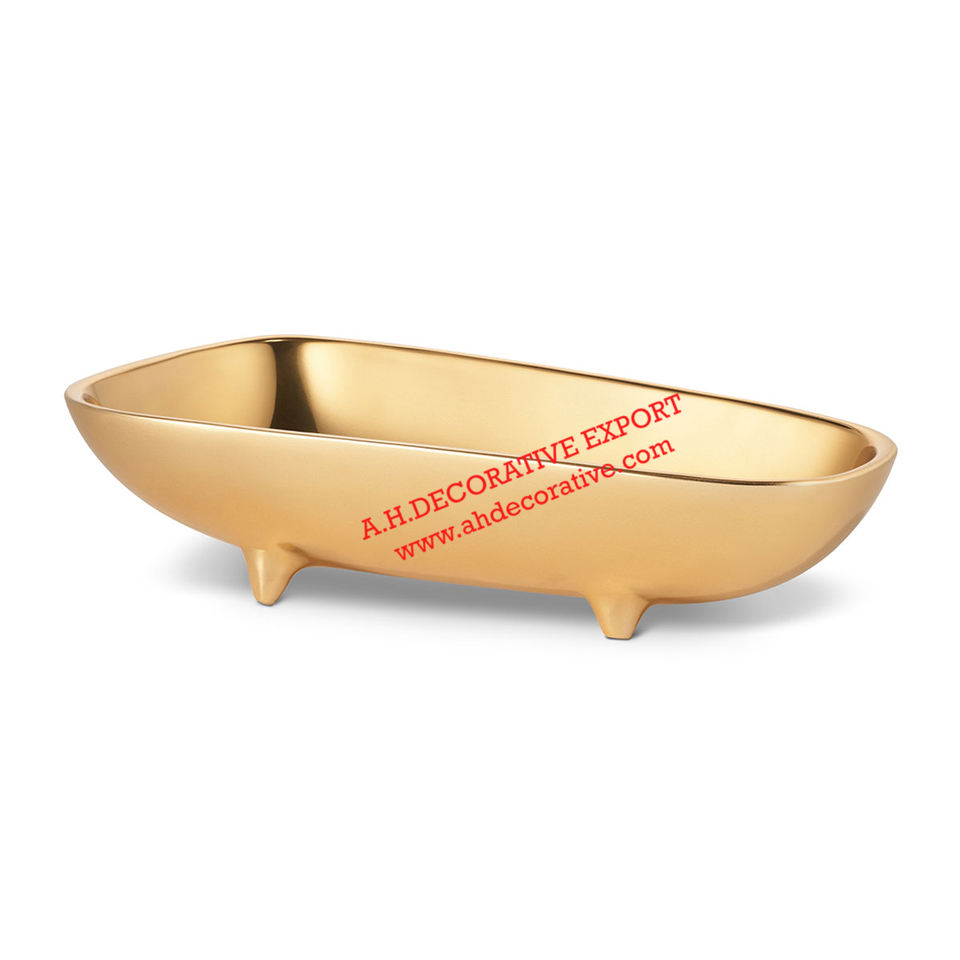 หรูหราเงารอยัลโกลด์ที่มีคุณภาพสูงตกแต่งรูปไข่รูปร่างชามเสิร์ฟอาหารที่มีฐานเท้าสำหรับขาย