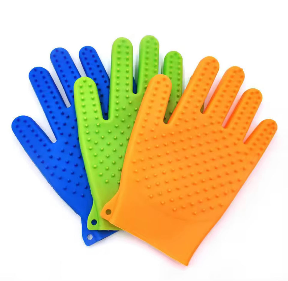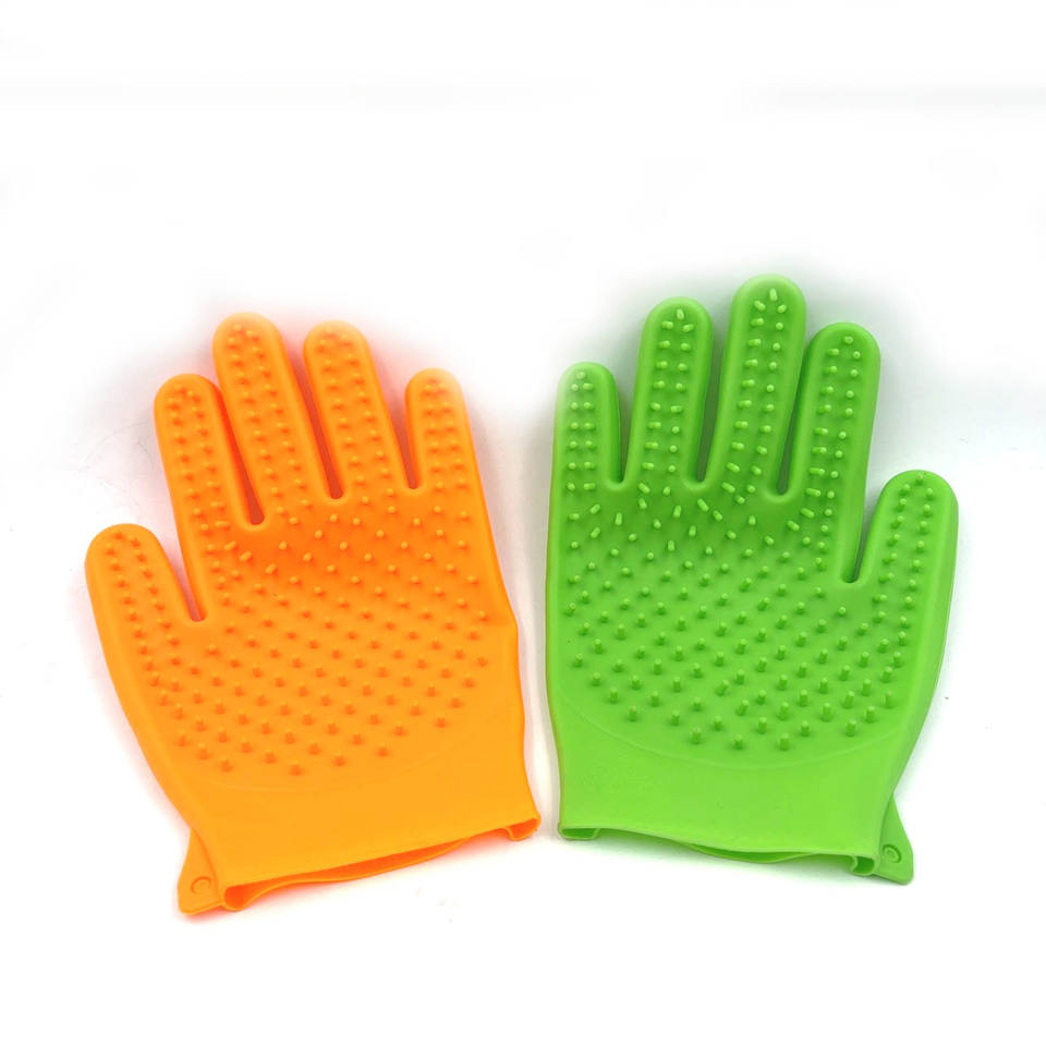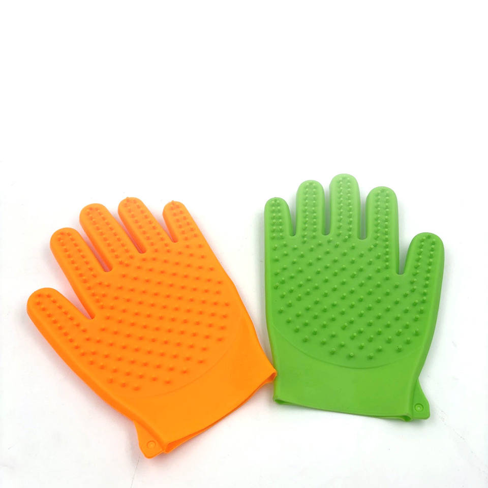 ถุงมือซิลิโคนหรูหราแบบห้านิ้ว สำหรับอาบน้ำและแปรงขนสัตว์ แบบสองด้าน สำหรับขจัดขนสุนัข นวด และแปรงอาบน้ำสำหรับม้า
