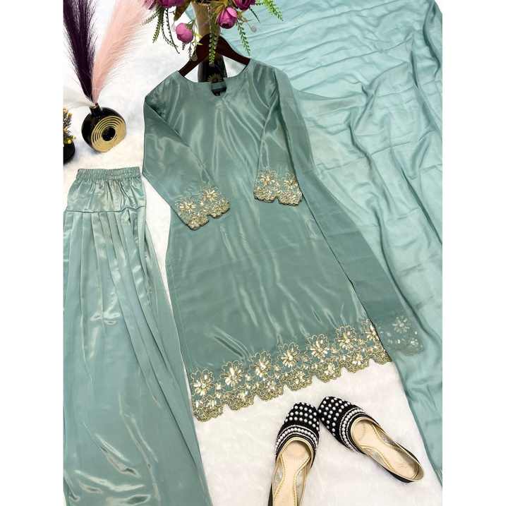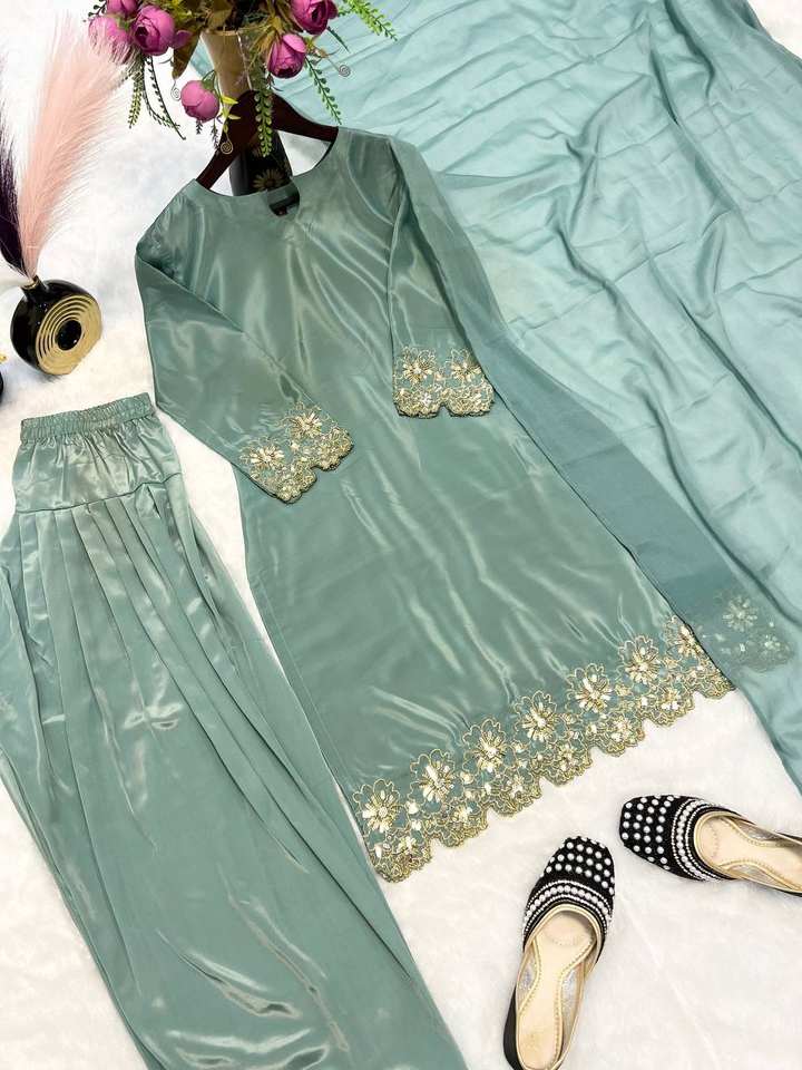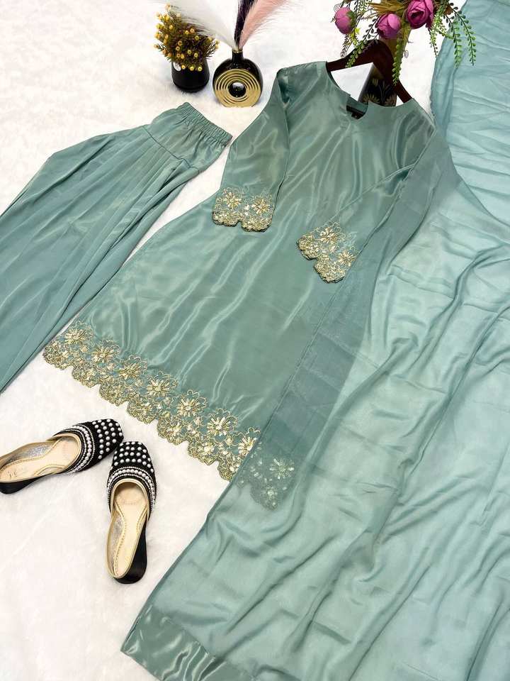Luxury Silk 3 Piece Kurti Set for Diwali Eid Engagements Family Functions and Special Occasion Wear Available for Export Price