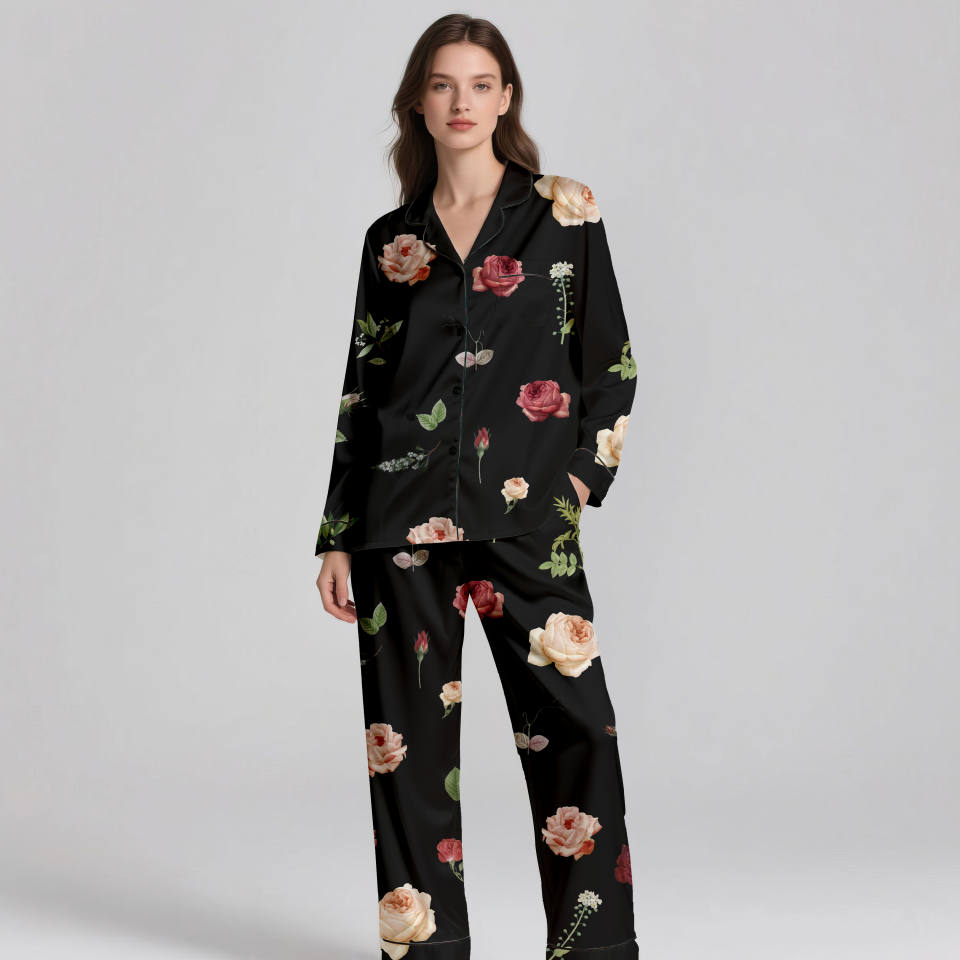 ชุดนอนผ้าไหมหรูหราสำหรับผู้หญิงชุดนอนผ้าซาตินลายดอกไม้หรูหราขนาดพิเศษ