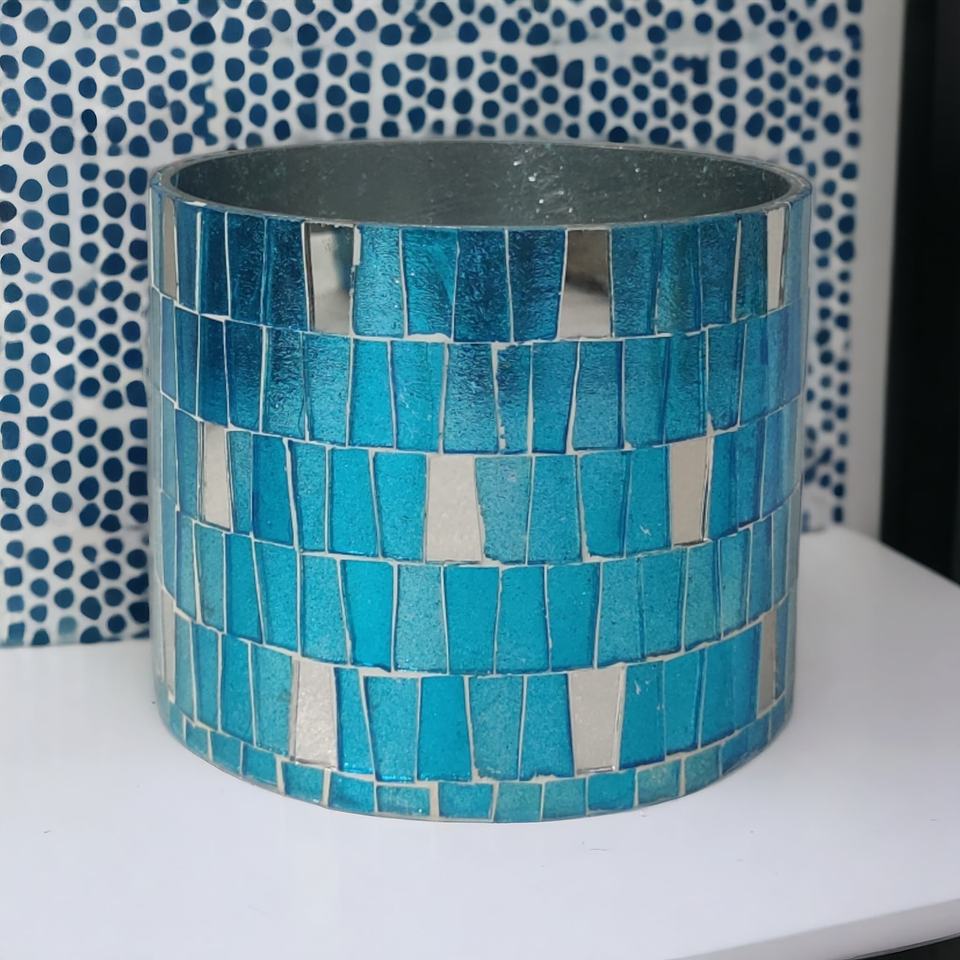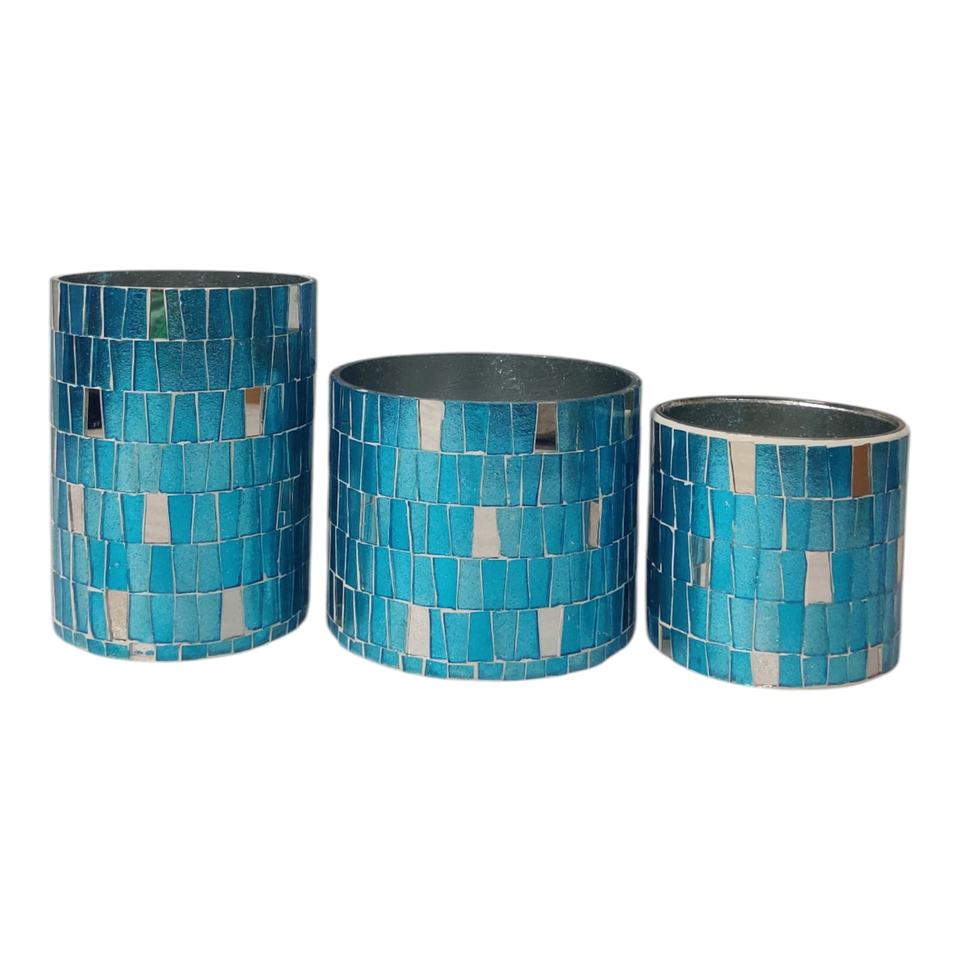 ที่ใส่แก้วสีเงินและสีฟ้าหรูหราขวดโคมไฟที่สง่างามสำหรับงานปาร์ตี้ที่บ้านและงานเทศกาลตกแต่งงานโมเสก