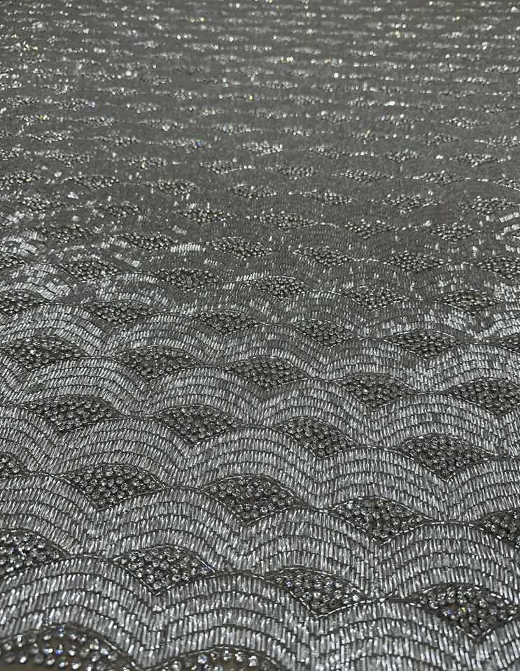 ผ้าปักมือลายลูกปัดเงินหรูหรา | ผ้าทูลล์ปักลูกปัดหนาแน่นสำหรับชุดแต่งงานและชุดเจ้าสาวขายส่ง
