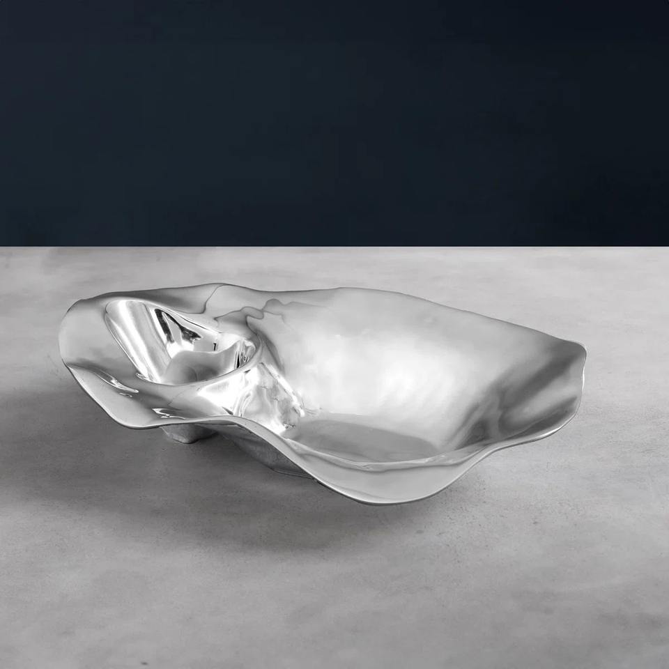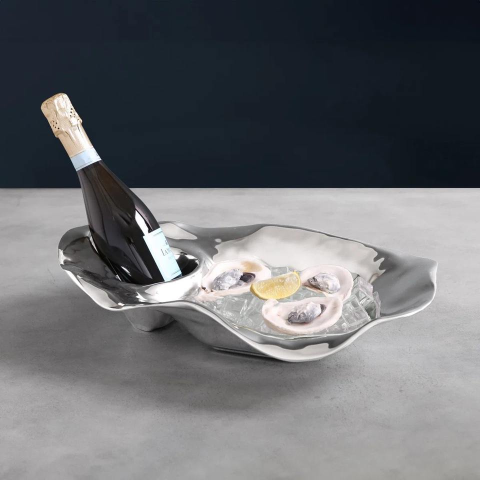 ถาดน้ำแข็งรูปเปลือกหอยสีเงินสุดหรูสำหรับแช่ไวน์และอาหารทะเล ถังแช่เครื่องดื่มอะลูมิเนียมหล่อขึ้นรูปทรงอิสระสไตล์ทะเล
