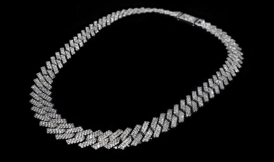 Luxury Silver Iced Out Cuban Link Chain VVS Moissanite Claw Setting Men's Body Jewelry Hip Hop Style Necklace