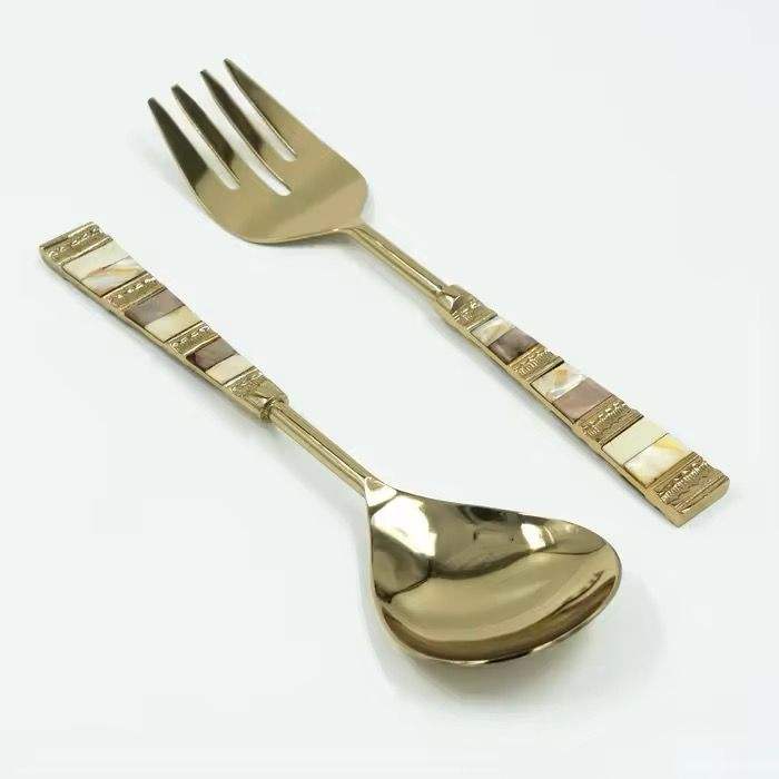 ชุดเซิฟเวอร์สลัดโลหะสีเงินสุดหรูพร้อมด้ามไม้สแตนเลสเครื่องใช้บนโต๊ะอาหารสำหรับบ้านงานแต่งงานสำหรับห้องครัว