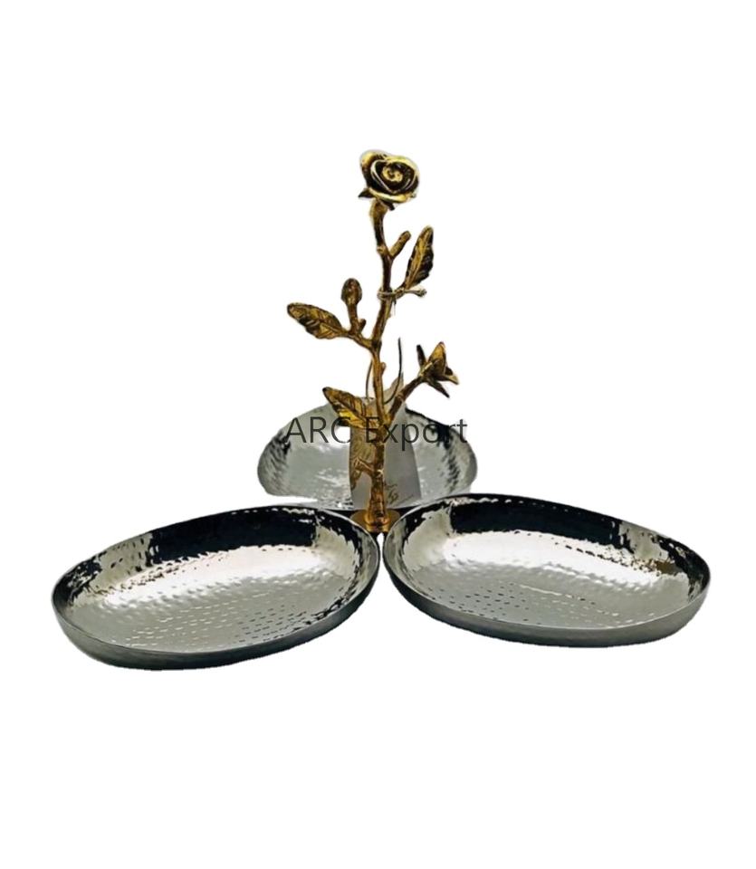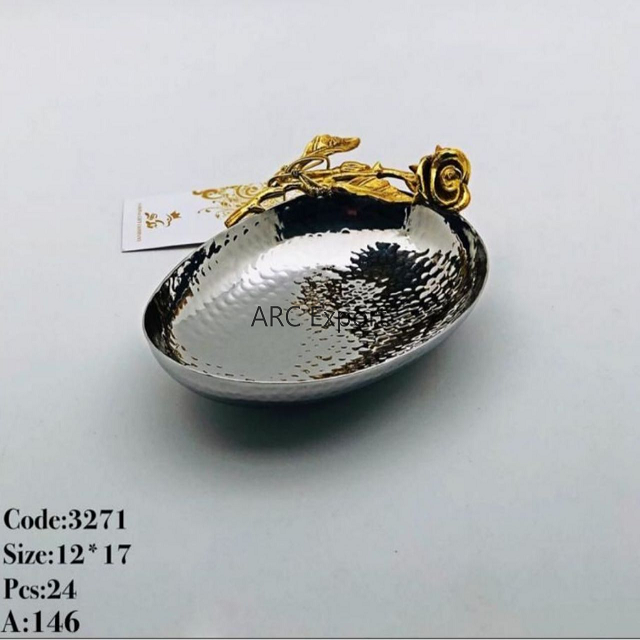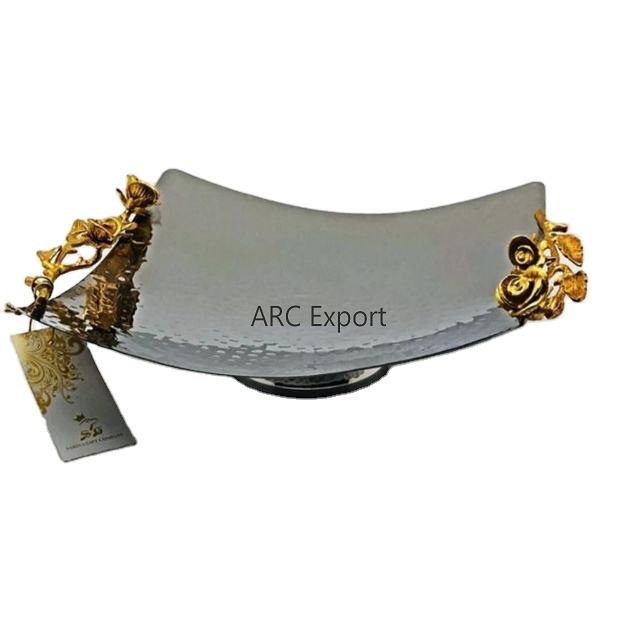 ชามเคลือบเงากระจกสีเงินสุดหรูพร้อมใบออกแบบสีทองจับโต๊ะในบ้านจานชามตกแต่งขนมและอาหาร