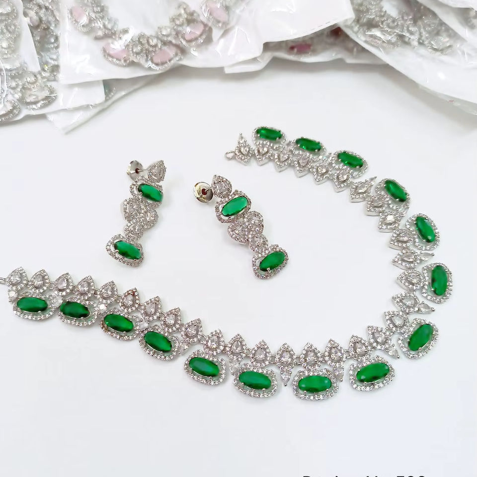 ชุดสร้อยคอเพชร CZ ชุบเงินหรูหรา ประดับด้วยหินหยดน้ำสีเขียว เครื่องประดับเจ้าสาวสำหรับงานแต่งงาน