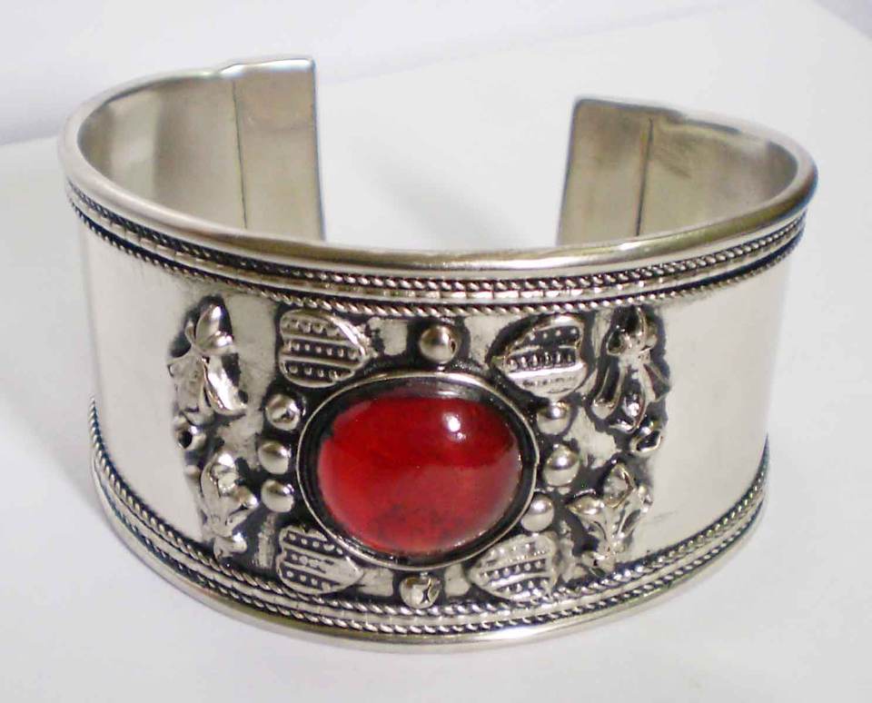กำไลข้อมือทองแดงชุบเงินหรูหราสำหรับผู้หญิง ประดับด้วยพลอยสีแดง ดีไซน์สวยงาม ทำจากโลหะแข็ง งานแฮนด์เมด สไตล์วินเทจ