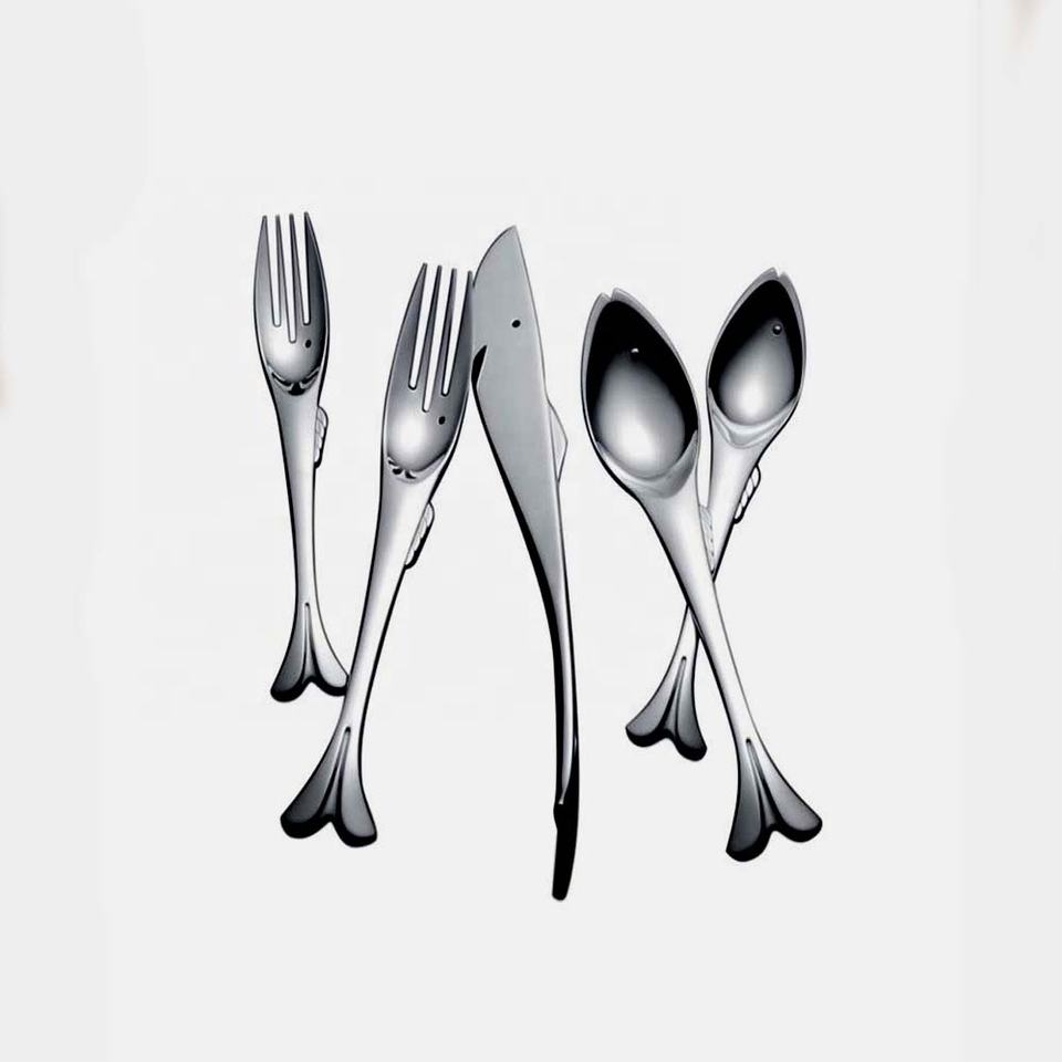 ชุดช้อนส้อมมีดดีไซน์รูปปลาสีเงินชุดเครื่องใช้บนโต๊ะอาหารดีไซน์เรียบง่ายทำจากสแตนเลสชุดมีดส้อมชุบเงินสุดหรู