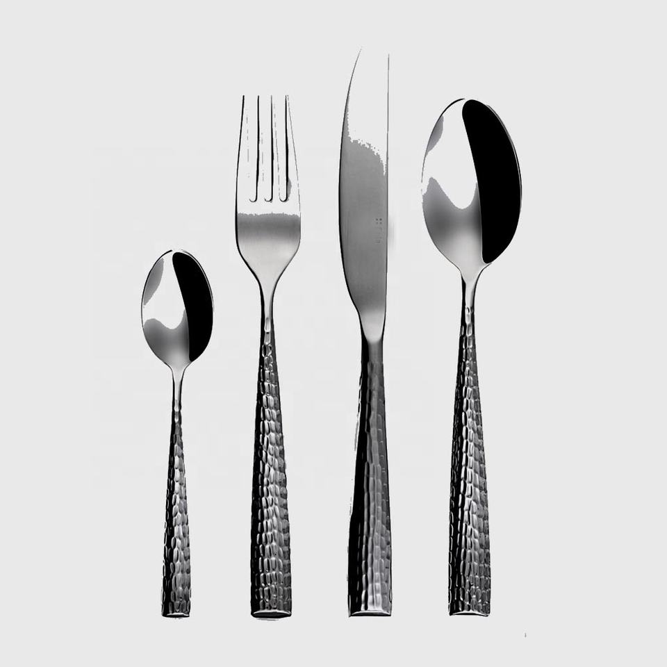 ชุดช้อนส้อมมีดสแตนเลสสำหรับงานแต่งงานแบบแบนมีด้ามจับสีดำชุบเงินสุดหรู