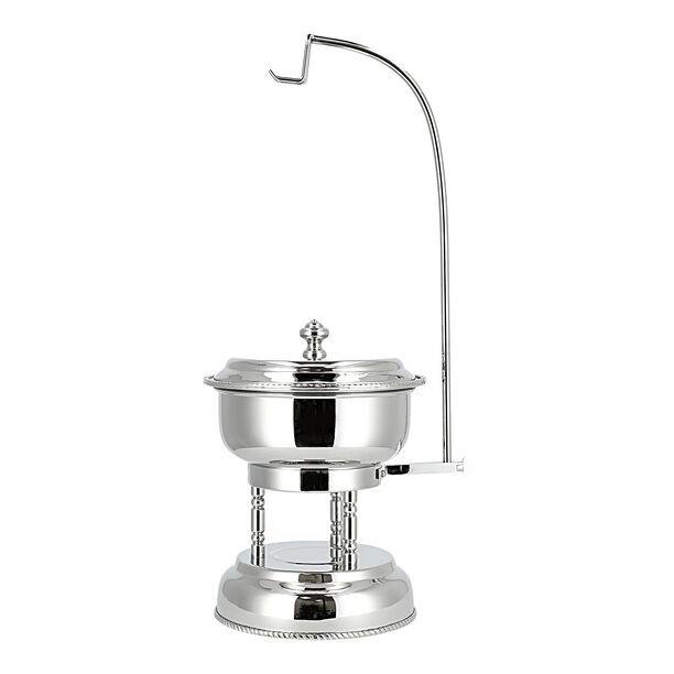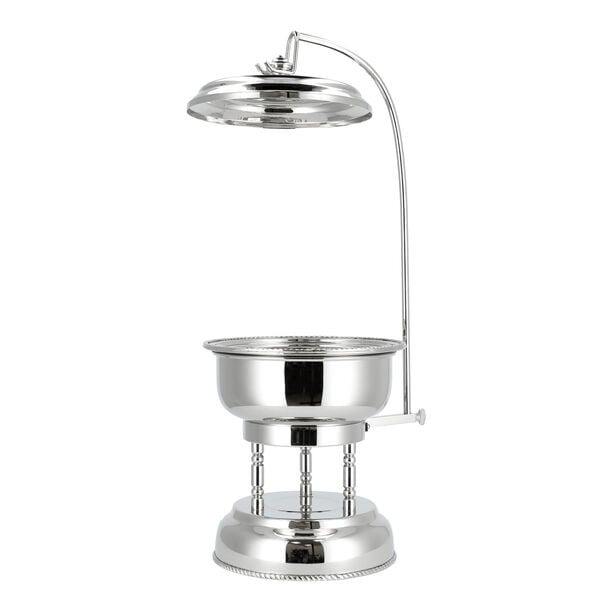 ถาดอุ่นอาหารบุฟเฟ่ต์สแตนเลสสีเงินหรูหรา พร้อมฝาปิดและตะขอแขวน สำหรับงานแต่งงานและโรงแรมในตะวันออกกลาง