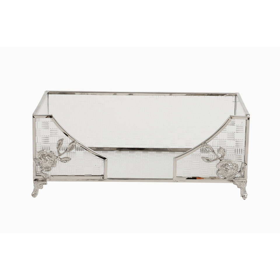 ที่ใส่ทิชชู่สีเงินสุดหรูอุปกรณ์จัดระเบียบผ้าเช็ดปากตกแต่งสไตล์เปิดพร้อมลายดอกไม้หรูหราโต๊ะเครื่องจ่ายสำหรับบ้านและโรงแรม