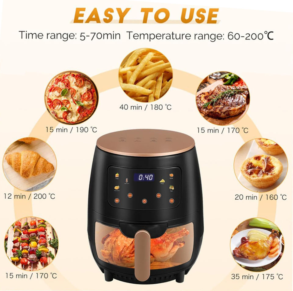 การควบคุมอุณหภูมิที่ปรับได้, ถอดออกน้ำมันคอนเทนเนอร์, จอแสดงผล LCD, ไม่ติดพื้นผิวการปรุงอาหาร, การป้องกันความร้อนสูงเกินไป, ด้วยแสงไฟฟังก์ชัน