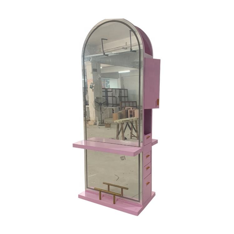 กระจกแต่งหน้าทรงโค้งแบบมีไฟ LED สำหรับร้านตัดผม ดีไซน์หรูหรา แบบเดี่ยวและแบบคู่