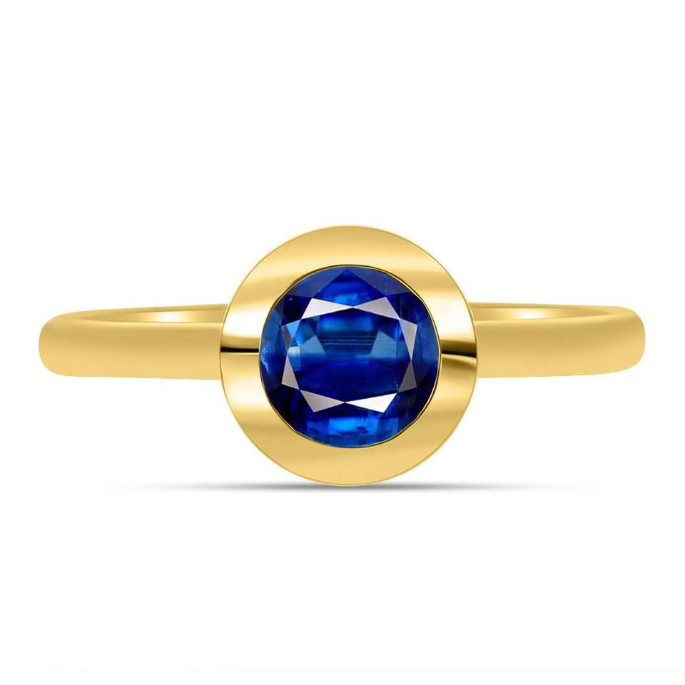 แหวนหมั้นพลอยไพลินสีน้ำเงินธรรมชาติทรงกลมเม็ดเดี่ยวหรูหรา แหวนทองคำแท้ 14K ประดับพลอยแบบคลัสเตอร์