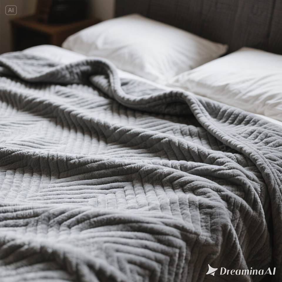 ผ้าห่มขนแกะเนื้อนุ่มดีไซน์เป็นลายนูนมีเส้นสีเทาขนาดควีนไซส์หรูหรา