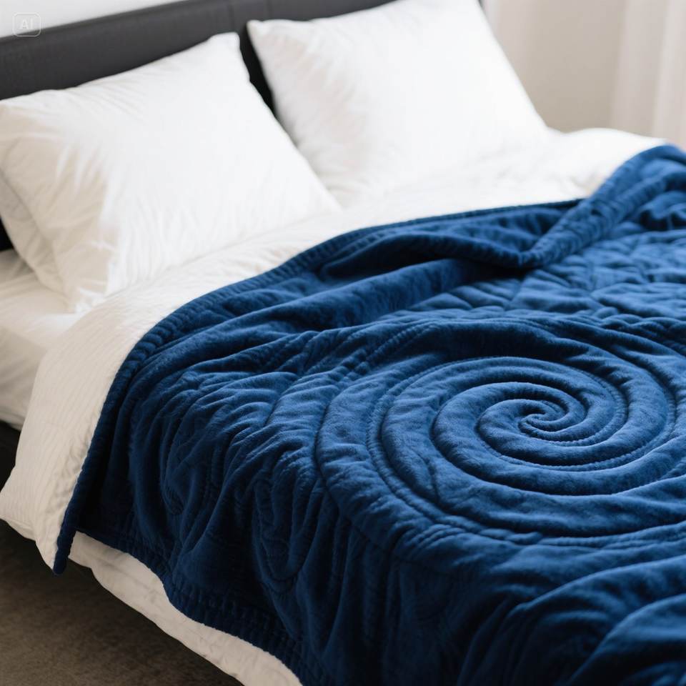 ผ้าห่มขนแกะเนื้อนุ่มออกแบบลายนูนเป็นเกลียวสีน้ำเงินเข้มให้มีความสบายปรับขนาดได้
