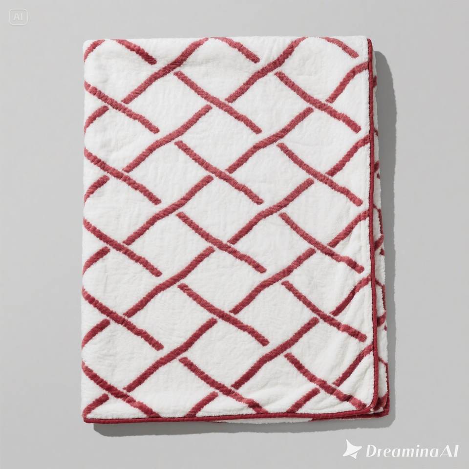 ผ้าห่มขนแกะเนื้อนุ่มดีไซน์หรูสีแดงขาวลายเส้นนูนดีไซน์ขนาดควีนไซส์