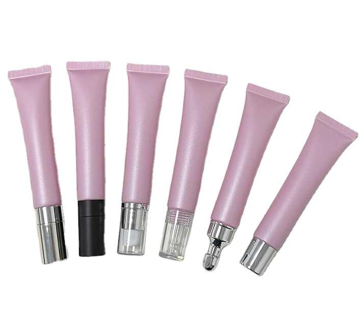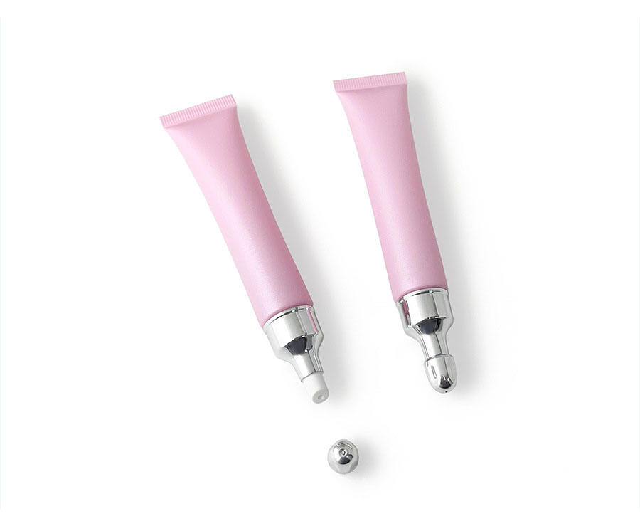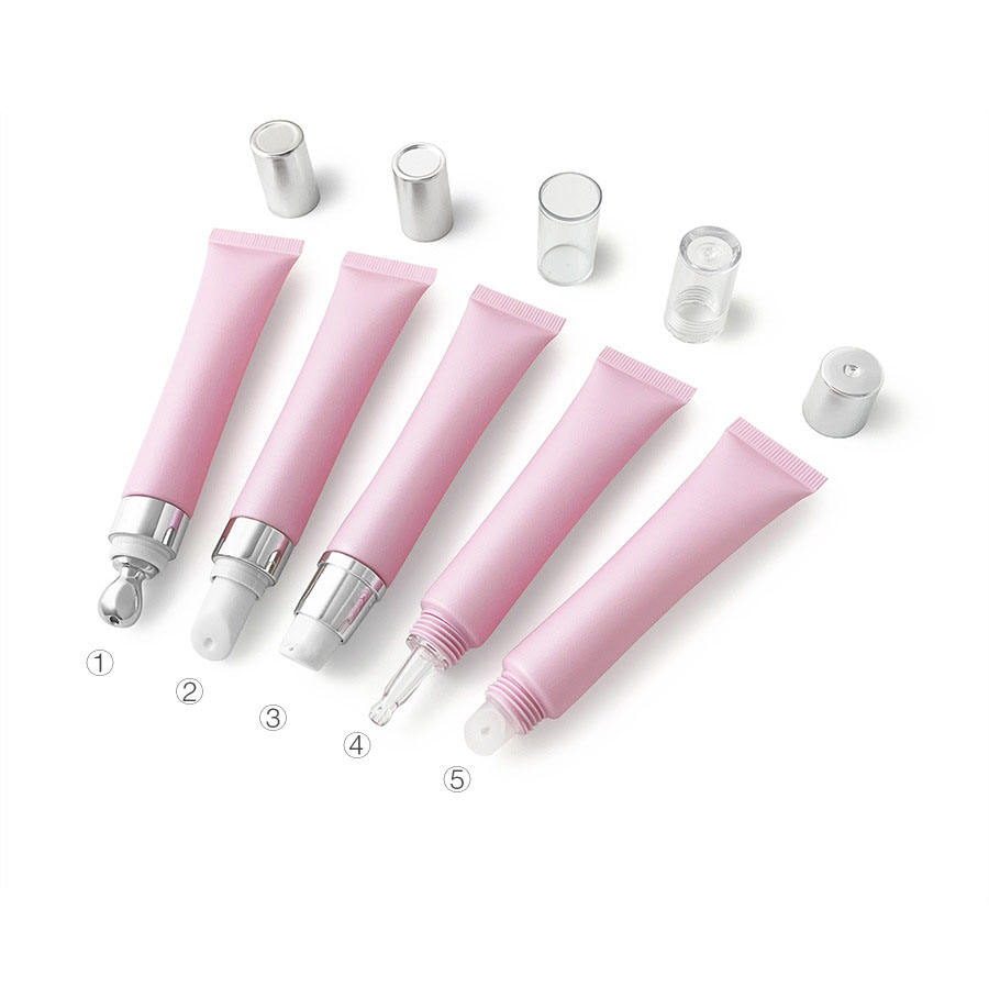 ขวดลูกกลิ้งนวดโลหะหลอดบีบนุ่มหรูหราหลอดลิปกลอสพลาสติกสำหรับครีมรอบดวงตาลิปสติกสีชมพู20กรัม