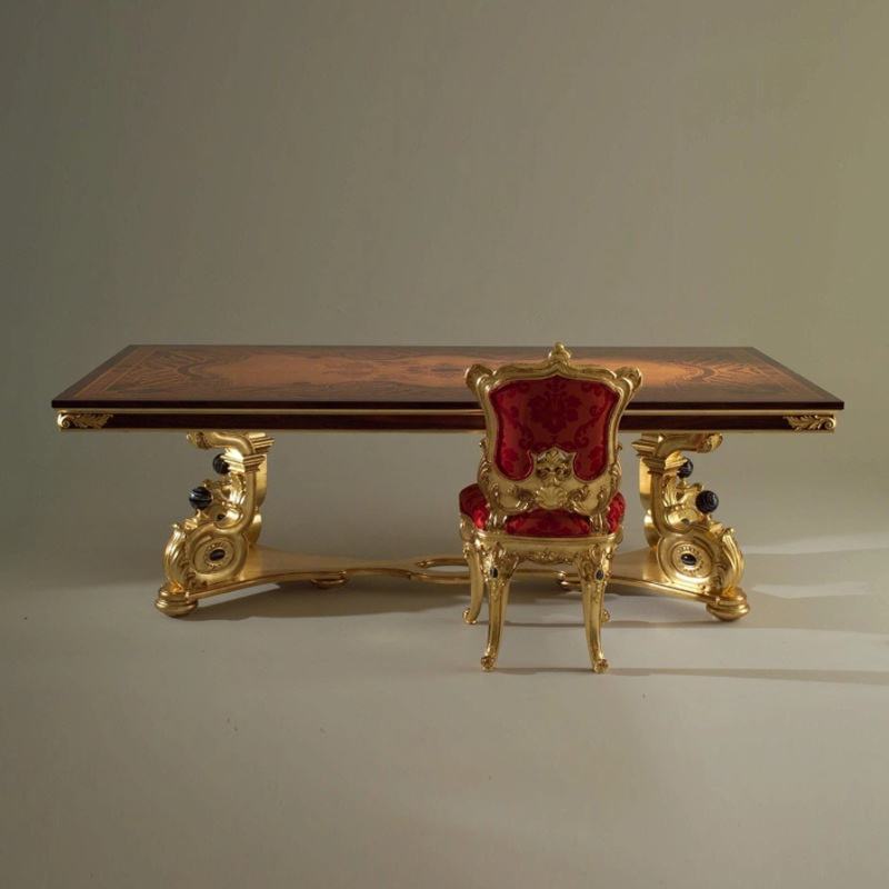 ชุดโต๊ะรับประทานอาหารไม้มะฮอกกานีแท้สไตล์มิดเซ็นจูรี่ สำหรับโรงแรมหรู 8 ที่นั่ง แกะสลักด้วยมือ เฟอร์นิเจอร์ห้องรับประทานอาหาร
