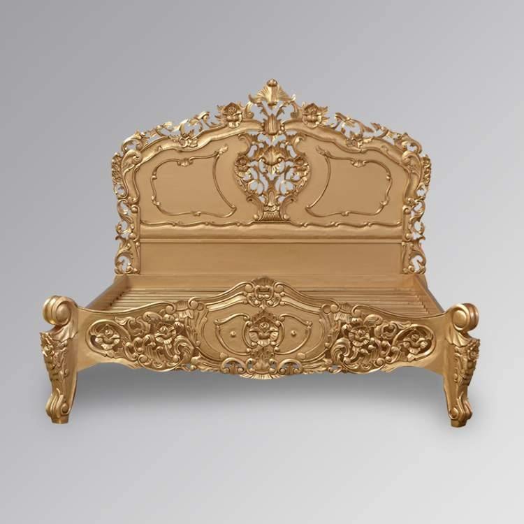 เตียงไม้มะฮอกกานีแข็งหรูหราพร้อมแกะสลักด้วยมือดีไซน์ทันสมัยตกแต่งด้วยทองโบราณเฟอร์นิเจอร์ห้องนอนคลาสสิก