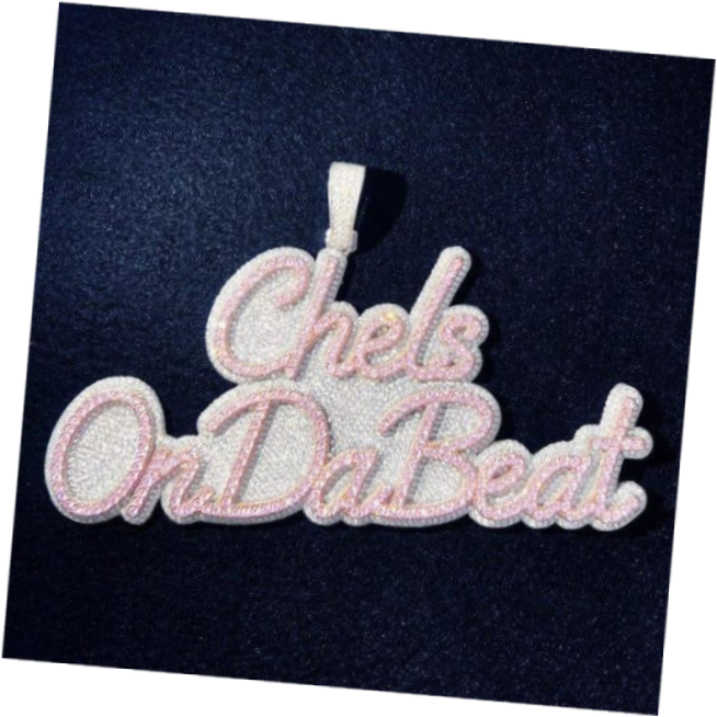 จี้รูปตัวอักษรฮิปฮอปสีเงินแท้สุดหรูพร้อมจี้เพชรสีโรสโกลด์เพชรสไตล์ฮิปฮอปสำหรับผู้ชายผู้หญิง