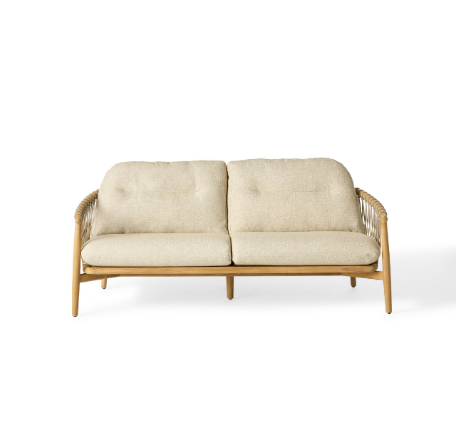 โซฟาไม้สักแท้สำหรับกลางแจ้งแบบสองที่นั่ง พร้อมเบาะหนานุ่ม เป็นมิตรกับสิ่งแวดล้อม ทนทาน ดีไซน์ที่วางแขนหรูหรา เหมาะสำหรับลานบ้านและระเบียง