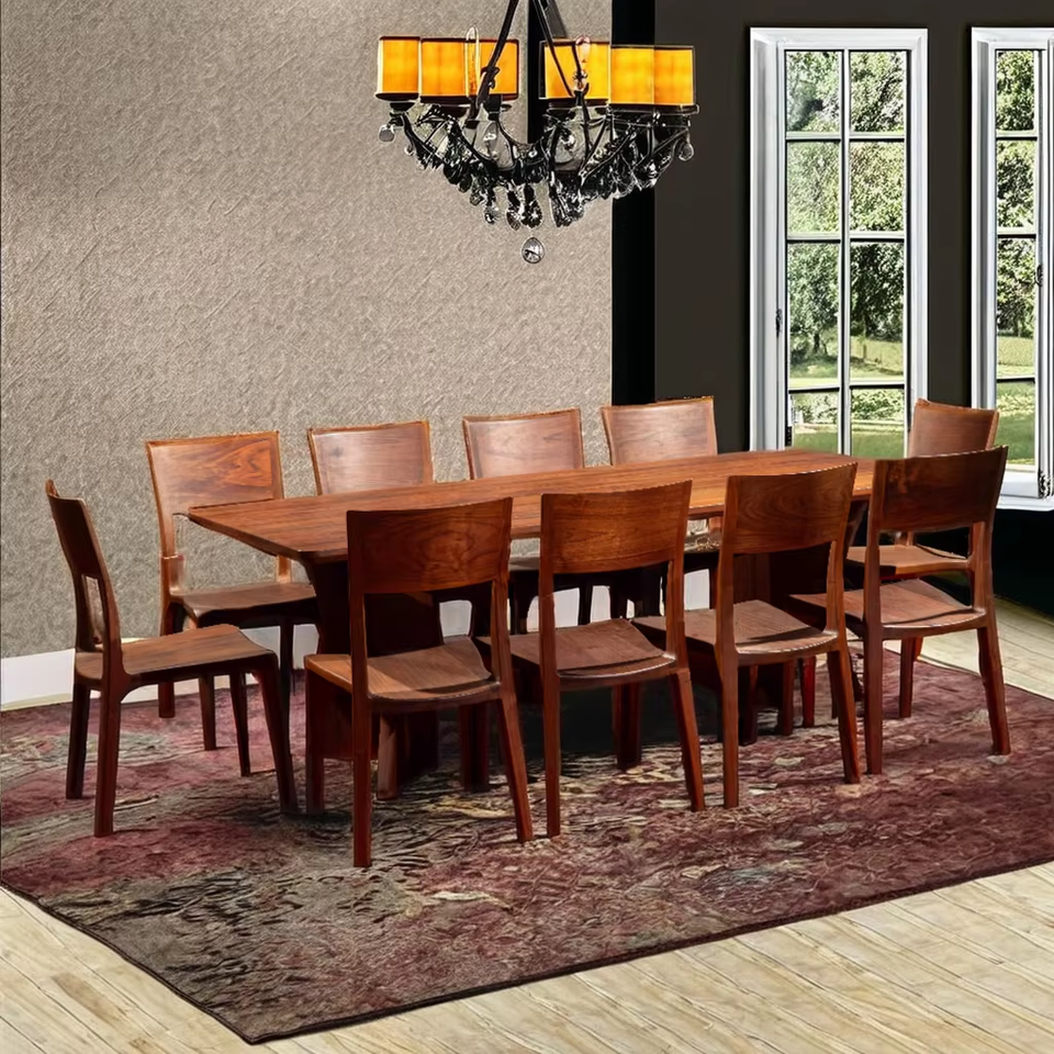 ชุดโต๊ะอาหารไม้วอลนัทแข็งสุดหรูสำหรับ10คนชุดรับประทานอาหารทรงสี่เหลี่ยมทันสมัยตกแต่งด้วยวัสดุ PU