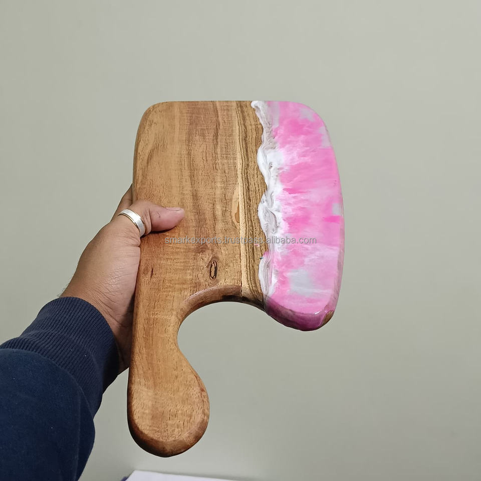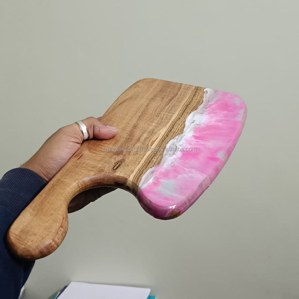 เขียงไม้เนื้อแข็งเคลือบอีพ็อกซี่เรซิ่นสุดหรู ถาดเสิร์ฟตกแต่ง ผิวเรียบเนียน ทนทาน เป็นมิตรกับสิ่งแวดล้อม หนา 2.0 ซม. สำหรับเตรียมอาหารในครัว