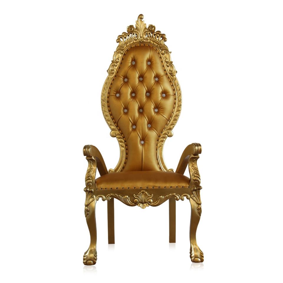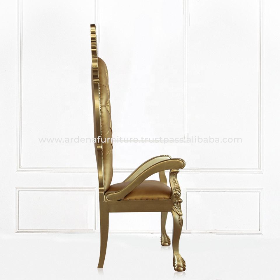 เก้าอี้บัลลังก์ของกษัตริย์ทำจากไม้มะฮอกกานีแข็งหรูหราดีไซน์แบบฝรั่งเศสโบราณผิวหลังสูงสีทองสำหรับงานแต่งงานโรงแรมอพาร์ทเมนต์