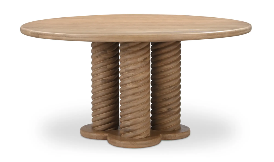 ขอบโค้งรูปทรงกลมทำจากไม้แข็งสุดหรูขาโค้งทำจากไม้จริงๆโต๊ะรับประทานอาหารออกแบบโดยไม่เหมือนใครทำจากไม้จริงๆ